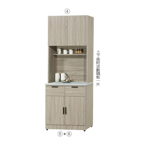 C403-5雷克斯2.7尺餐櫃下座 木面 $3500 C403-4 雷克斯2.7尺餐櫃上座 $3100 C403-5 2.7尺石面 另加購 $1600