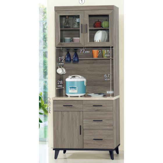 C1021-4 芮茲灰橡木2.7尺碗碟櫃 全組 上座 下座 皆附隔板一片 $7900 C405-5芮茲灰橡木2.7尺碗碟櫃 上座 附隔板一片 $3100 C405-9 芮茲灰橡木2.7尺碗碟櫃 下座 仿石紋$4400