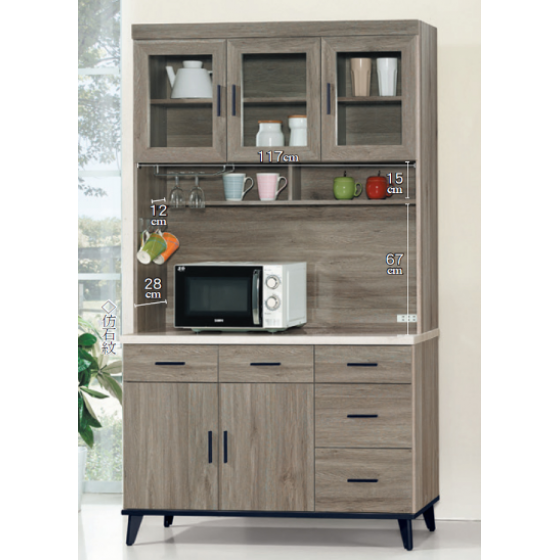 C405-7芮茲灰橡木4尺碗碟櫃 全組 下座附隔板1片 上座附隔板1大1小片 $10600 C405-8 芮茲灰橡木4尺碗碟櫃 上座 附隔板 1大1小片 $4500 C405-10芮茲灰橡木4尺碗碟櫃 下座 仿石紋$6100