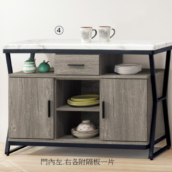 C414-5 523 灰橡雲衫4尺餐櫃 仿石紋 $7400
