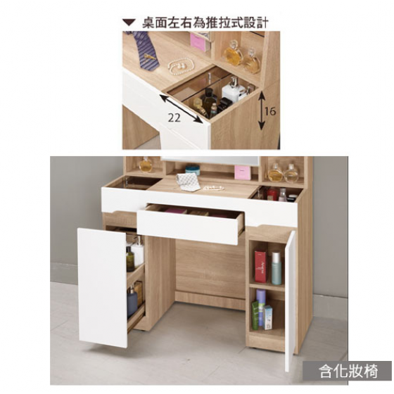 A1253-2伯妮斯3.3尺化妝台 全組 含椅 附活動隔板1片 $12700 A1253-3伯妮斯3.3尺化妝台下座 含椅 附活動隔板一片$9800 A1253-4伯妮斯3.3尺化妝鏡 $2900
