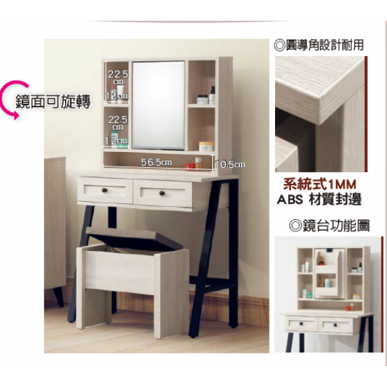 D245-1 艾瑪莎北歐風2.5尺鏡台 不含椅 $6300 D245-2 艾瑪莎北歐風化妝椅 $1100