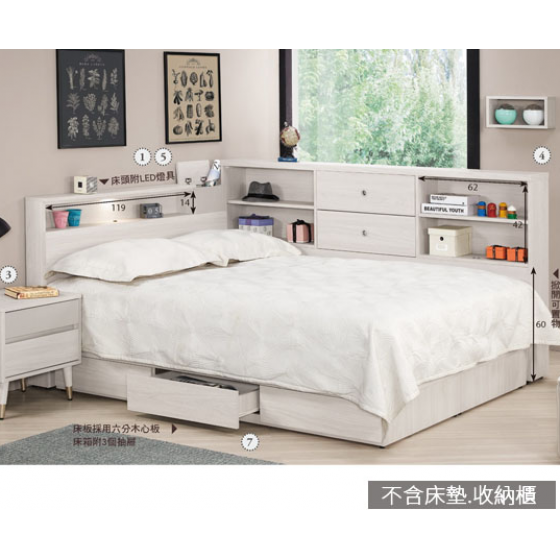 A1282-1蘿克斯5尺雙人床 不含床墊 單邊抽屜 附LED燈具$14300