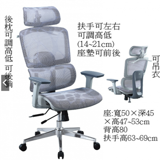 C470-10 544灰穀灰全網辦公椅$6000