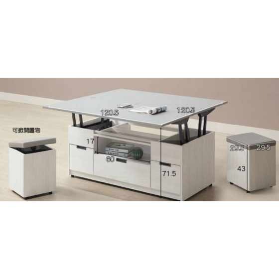 D363-3 艾維斯4*4尺仿石面多功能大升降茶几 含*2輔助椅$11200