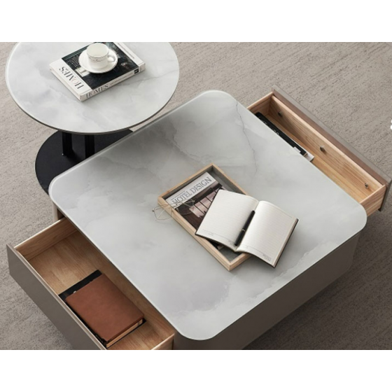 D374-5 納塔莉玻璃大茶几 含邊几$8600