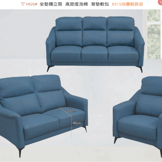 F18-1 H525#沙發 整組$41700 F18-2 H525#沙發一人座$8600 F18-3 525#沙發二人座$13700 F18-4 H525#沙發三人座$19300