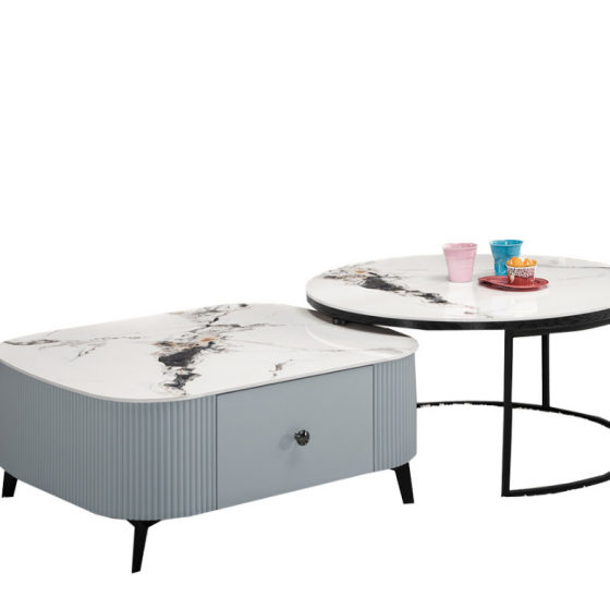A1408-1布魯斯組合岩板茶几 全組 桌面8MM岩板 抽屜雙邊造型 單邊使用$8500