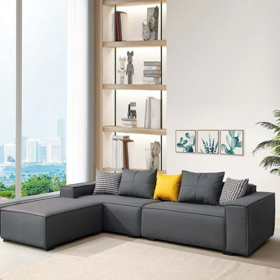 B221-01格瑞塔L型科技布沙發$34800 B221-02多人位科技布沙發$29300 B221-03格瑞塔科技布 腳椅 深灰色$5300 B221-04 格瑞塔三人座科技布沙發$23700