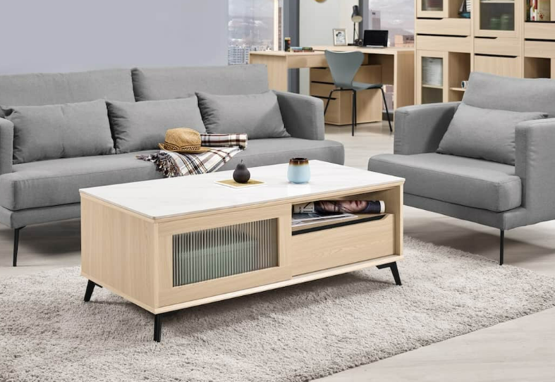 A1440-1朵利斯4尺岩板大茶几 桌面12MM岩板 雙邊造型 雙邊使用$8900