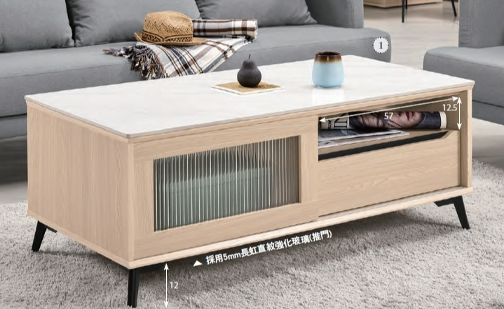 A1439-1朵利斯4尺岩板多功能大茶几 桌面12MM岩板 雙邊造型 雙邊使用$9400
