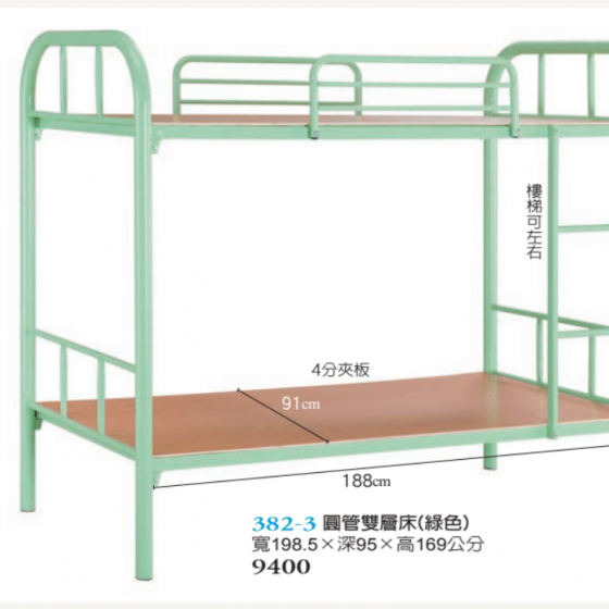 F134-3 圓管雙層床 綠色$6800 F134-4 圓管雙層床 905色$6800
