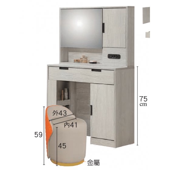 F187-2 艾斯白雪松2.7尺化妝台 含椅$8400