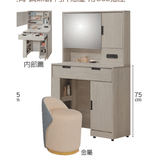 F189-2布來恩淺灰橡2.7尺化妝台 含椅$8400