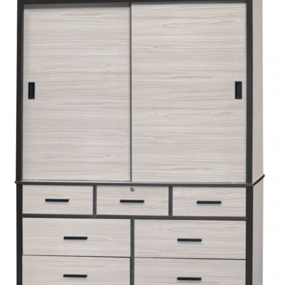 F219-1黑框雪松4*7尺推門七抽衣櫥$10300 F219-2黑框雪松5*7尺推門七抽衣櫥$12000