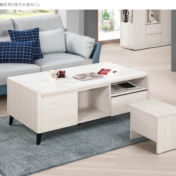 A1436-1艾德嘉4.3尺岩板大茶几 附輔助椅*2 雙邊造型 雙邊使用 桌面12MM岩板$10500