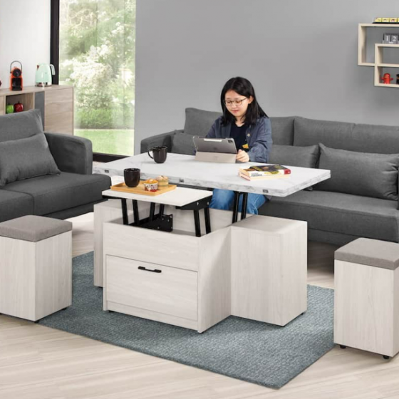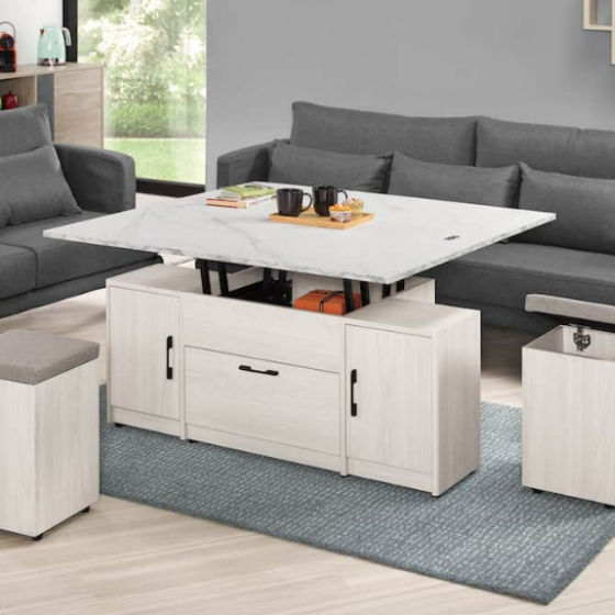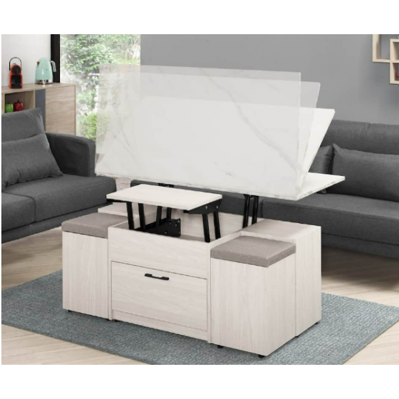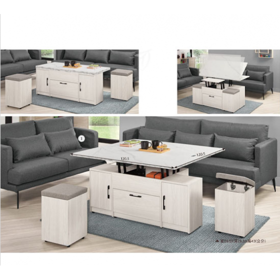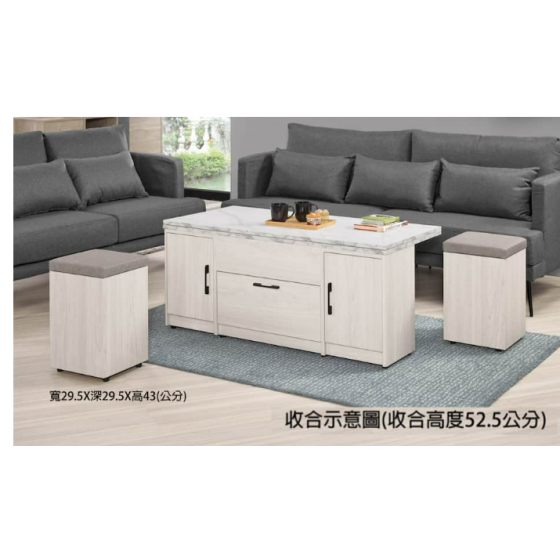 A1435-1蘿克斯4*4尺仿石面多功能大茶几 油壓升降五金 附輔助椅*2$12000