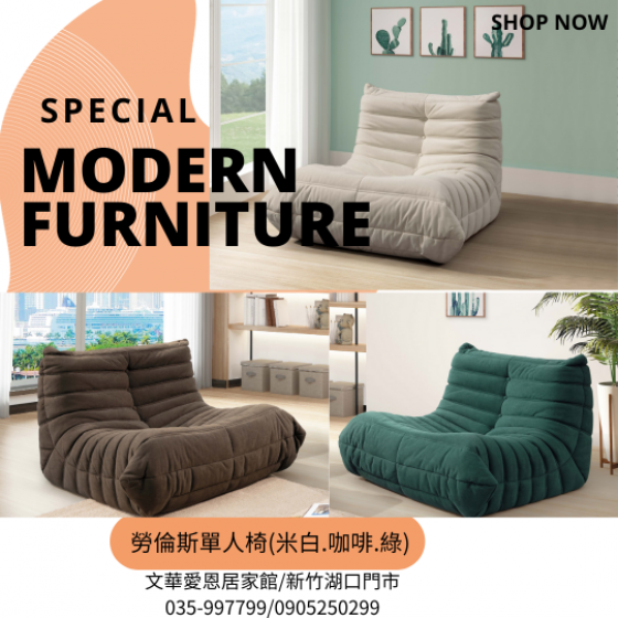 B237-01勞倫斯單人椅 (米白毛毛蟲)$8300 B237-02 勞倫斯單人椅(咖啡毛毛蟲)$8300 B237-03 勞倫斯單人椅(綠毛毛蟲)$8300