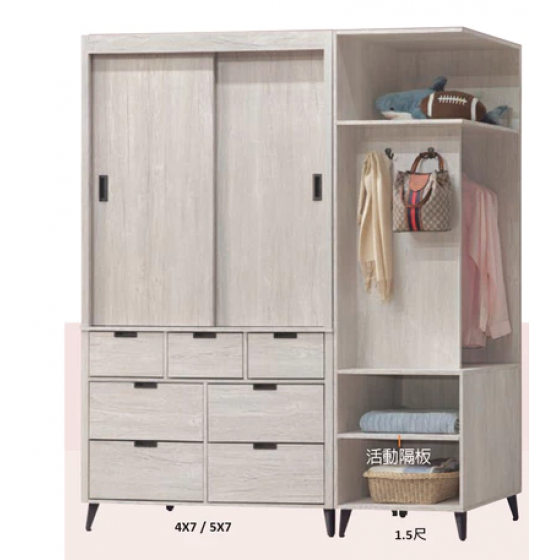 F189-5布來恩淺灰橡4*7尺推門衣櫥 鐵腳$10500 F189-4布來恩淺灰橡5*7推門衣櫥 鐵腳$12200