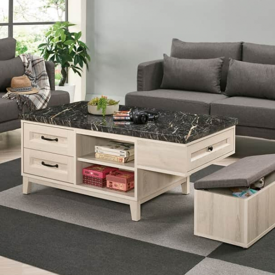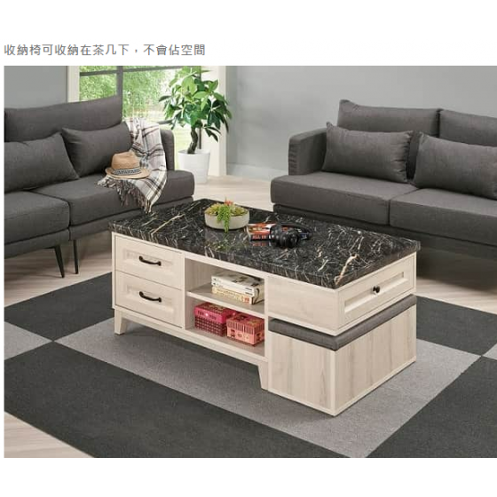 A1445-1雪莉4尺單凳原石大茶几 抽屜雙邊造型 單邊使用 附輔助椅*1$9800