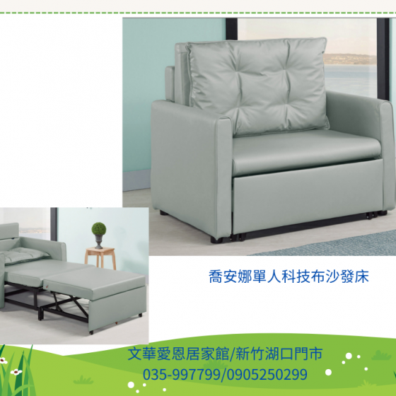 206-2 喬安娜單人科技布沙發床(坐寬88量至背枕處坐深50坐高41公分)$12000