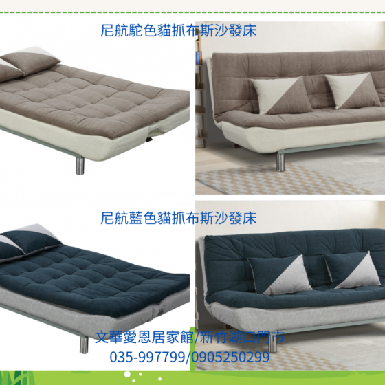 207-2 尼航駝色貓抓布沙發床(坐高45坐深55公分.附2個小抱枕)$8000 207-3 尼航藍色貓抓布沙發床(坐高45坐深55公分附2個小抱枕)$8000