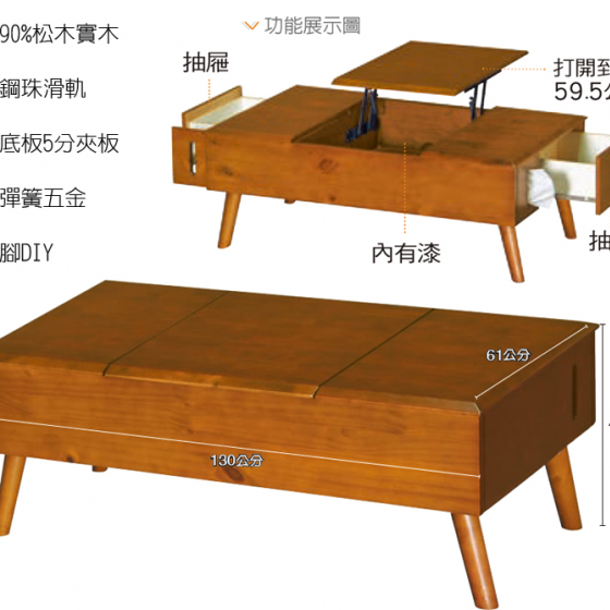 F530-6實木升降大茶几 雙抽 腳DIY$4400