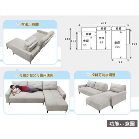 225-2春川L型貓抓布功能沙發(全組.左向)(附2個小抱枕坐寬243坐高46公分)$28900 225-3春川L型貓抓布功能沙發 全組 右向 ⊙附2個小抱枕、坐寬243坐高46公分$28900