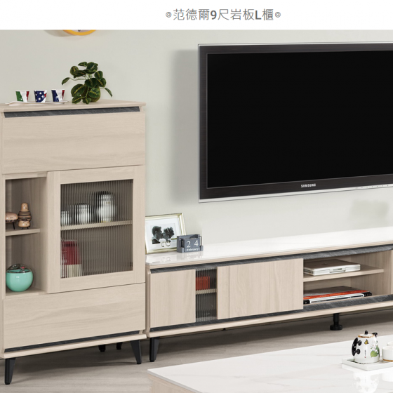 A1485-1范德爾9尺岩板L櫃 附活動隔板2大2小片 桌面12MM岩板$15500