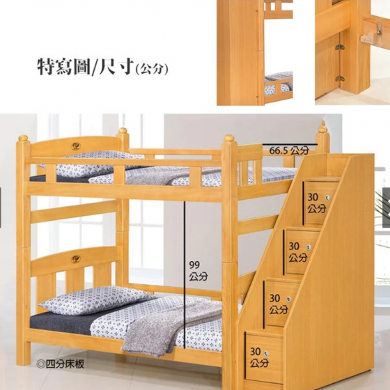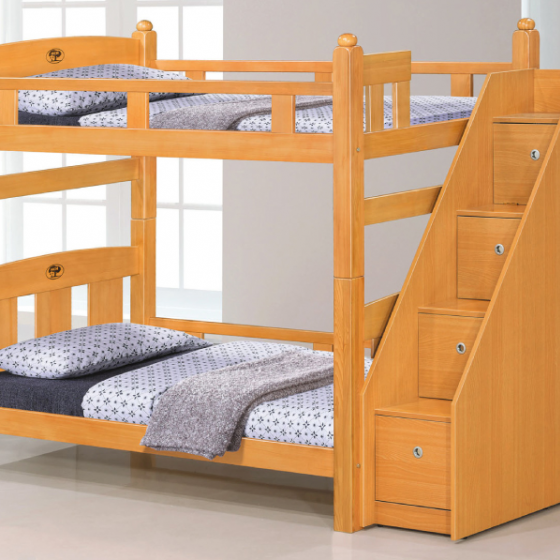 E629-3 葛萊美3.5尺檜木色雙層床 四分夾板 含收納樓梯$21200 E629-4 檜木色收納樓梯$7100