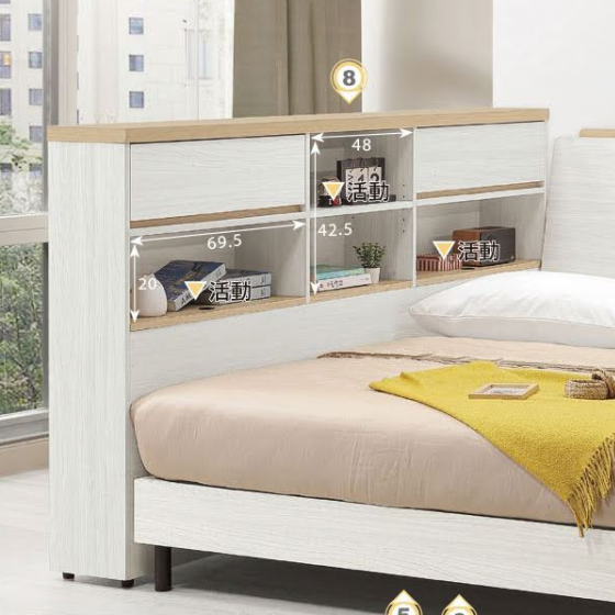 005-2 洛蒂6.4尺床邊櫃 下緣高度61公分 附活動隔板*1 左右可掀開置物$6800