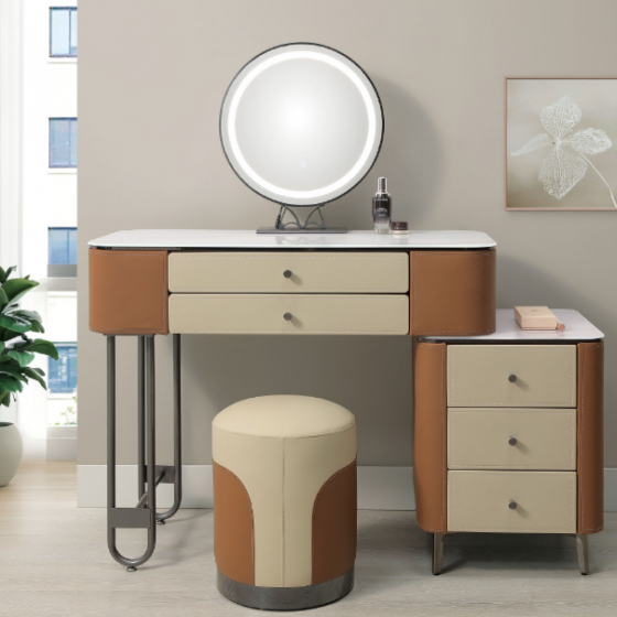 B24-02 羅貝卡3.3尺馬鞍皮伸縮鏡台 含椅 1號 咖色 左 右自由擺放$18700