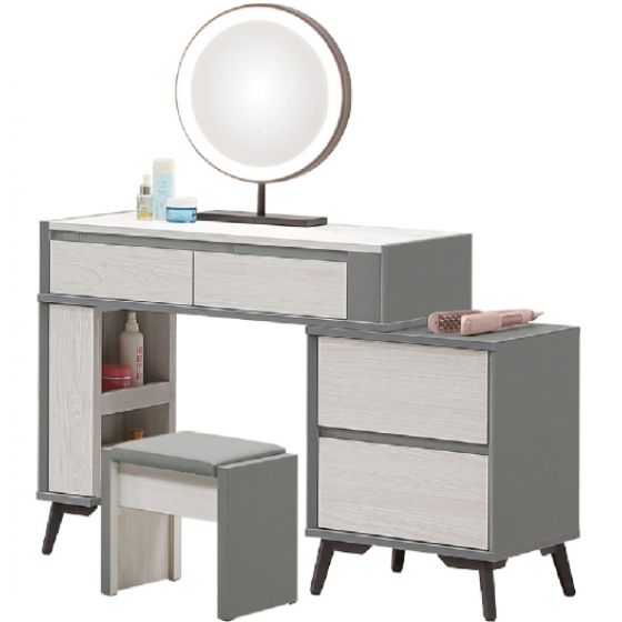 B43-10 科琳2.7尺伸縮鏡台 含椅 側腳與二抽櫃可左右自由擺放$12600