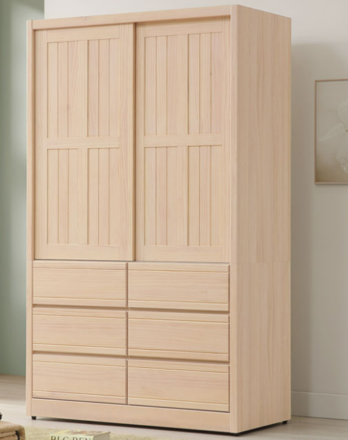 C013-10 米樂實木洗白4*7尺推門衣櫥 單吊 抽屜*6$14700