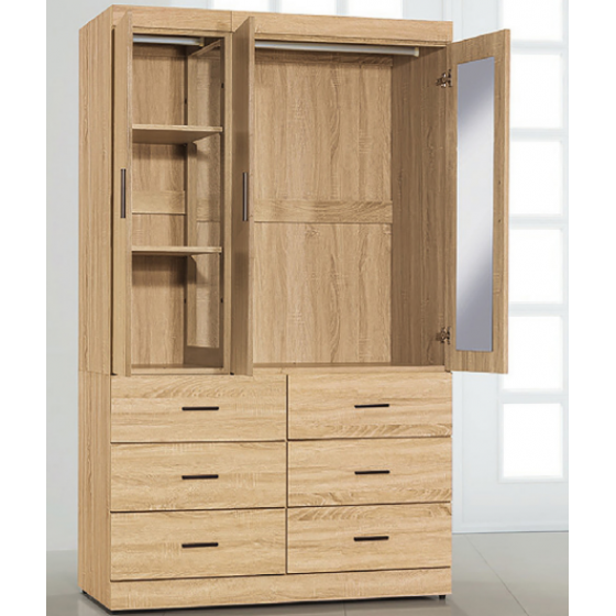 E704-4 原橡耐磨3*7尺衣櫥$5300 E704-1 原橡耐磨4*7尺六抽衣櫥 附內鏡$8100