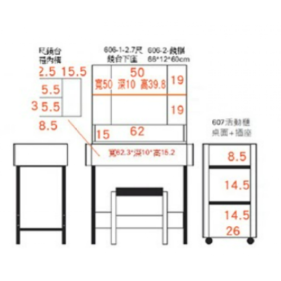 化妝台+化妝椅+化妝鏡+穿衣鏡