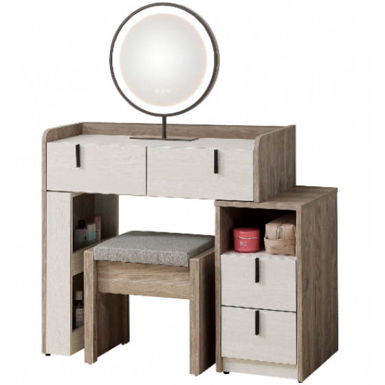 B68-01 伊格絲2.7尺圓鏡伸縮鏡台 含椅 側腳與側櫃 可左右自由擺放$10900