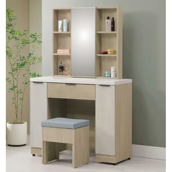 044-3 庫克3.3尺開門鏡台 含椅 鏡框開門內附*2固定隔板 鏡坐高度76公分 左右門內各附*1活動隔板$9800