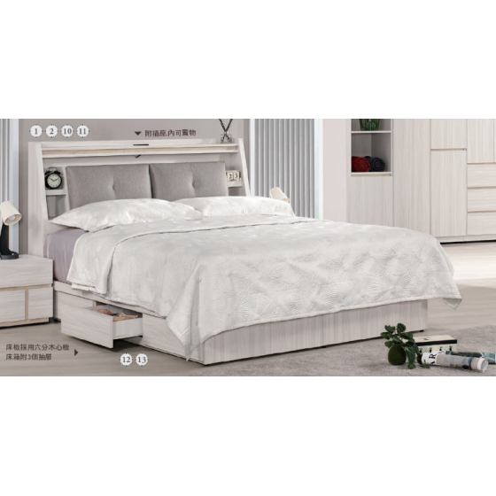 A1003-1 克萊格6尺被櫥式雙人床 不含床墊 單邊抽屜 3.5尺+2.5尺 附插座$20500 A1003-2 克萊格5尺被櫥式雙人床 不含床墊 單邊抽屜 附插座$17100