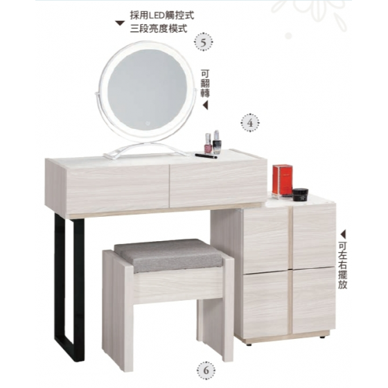 A1003-4 克萊格2.7尺仿石面伸縮化妝台 全組 鏡台 含椅 可左右擺放$11400
