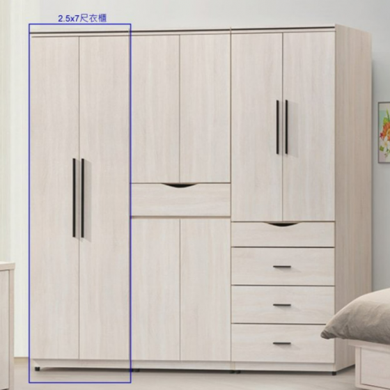 E534-7 寶麗白雲橡2.5*7衣櫃 雙吊 內抽$7800