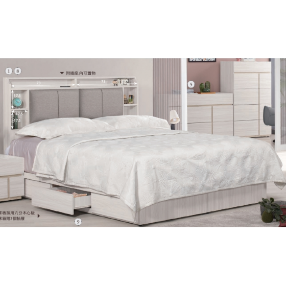 A1005-1 克萊格5尺雙人床 不含床墊 單邊抽屜 附插座$15400 A1007-1 克萊格3.5尺單人床 不含床墊 單邊抽屜 附插座$11700