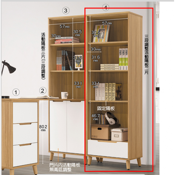 D626-6 肯詩特烤白雙色2尺一抽書櫃$4800