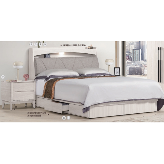 A1019-1 丹尼斯6尺被櫥式雙人床 不含床墊 單邊抽屜 3.5尺+2.5尺 附LED燈具$20400 A1019-2 丹尼斯5尺被櫥式雙人床 不含床墊 單邊抽屜 附LED燈具$17300