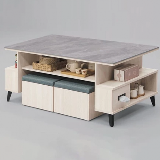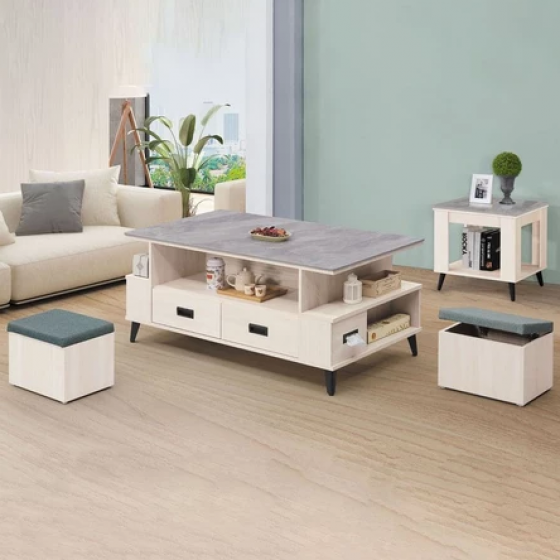 F66-3 4號130公分鋼刷白大茶几 含岩板12MM+小椅*2$7800