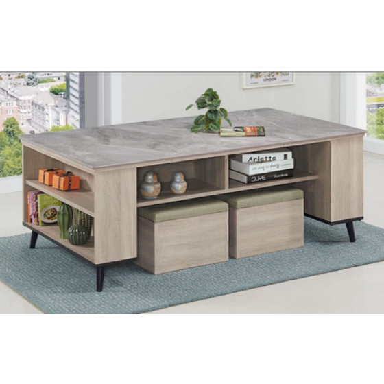 F67-2 1號150公分芋頭色大茶几 含岩板12MM+小椅*2$10600