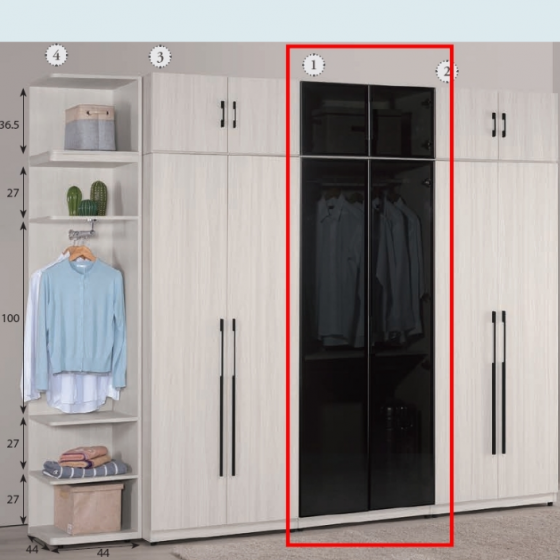 A1027-2華爾斯2.7尺被櫥式鋁門衣櫥 雙吊 鋁門+5MM強化黑玻璃$16400