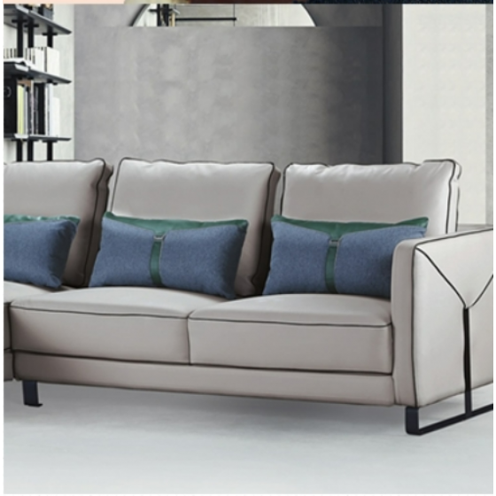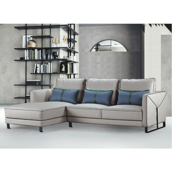 C176-2 尤軒L型淺灰色皮沙發(三人+坐右貴妃椅) 702-04皮 仿真皮 附抱枕*3 $35800