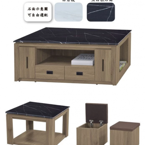 F71-7 魯邦灰橡大茶几 黑白根石面$8600