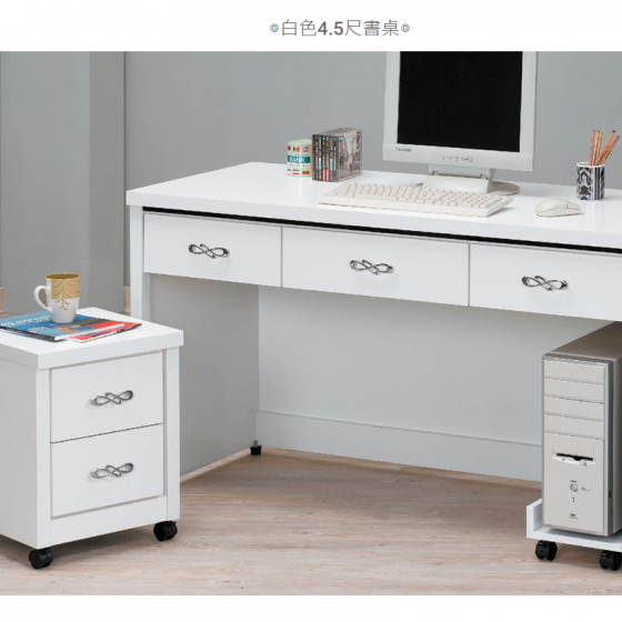 D639-3 白色4.5尺書桌 全組 含活動櫃 + 主機架$8100